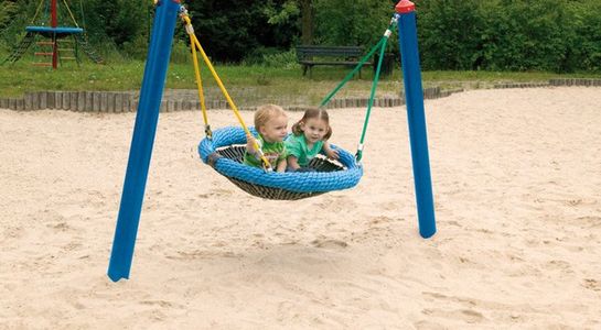 - 2 słupy stalowe (Ø 102 mm), ocynkowane ogniowo, długość 2,40 m, z maskownicami (tworzywo sztuczne) i zaczepami do zawieszania