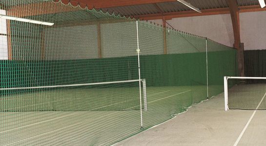 Siatka oddzielająca korty tenisowe do hal tenisowych i kortów zewnętrznych - wykonana z materiału niepalnego.